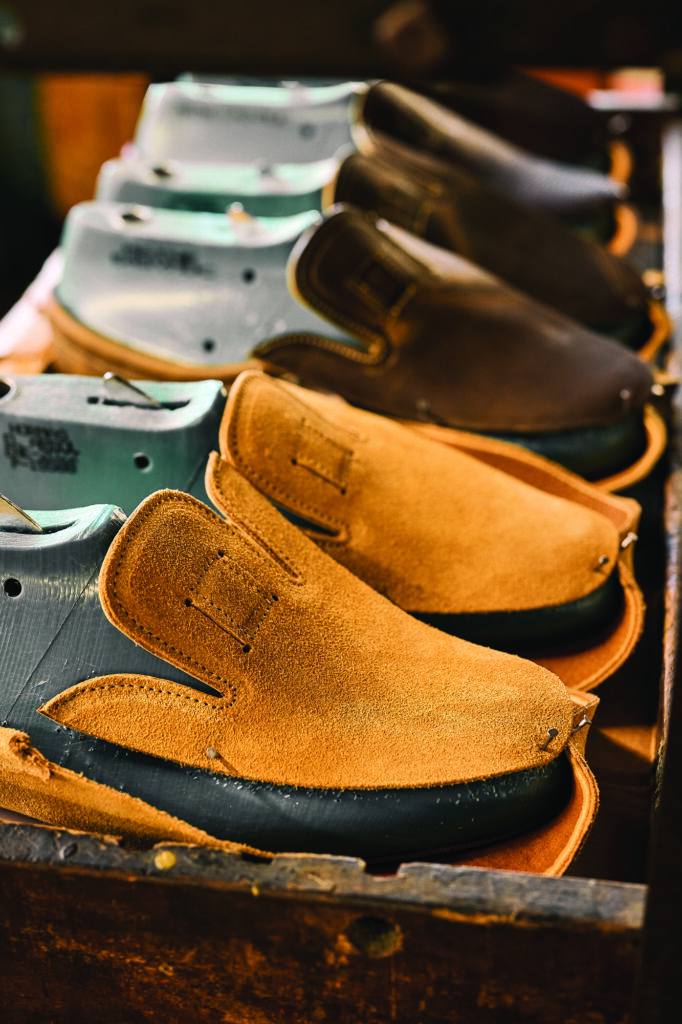 But if the cutter gets sloppy, the leather won’t stretch properly, and before long he’ll have a hand-sewer cursing his name. “Hand-sewers are not shy people—I’ll tell you that right now,” says Kevin Shorey, co-CEO at Quoddy, which makes custom boots, shoes, and slippers on the second floor of the old Pepperell Mill on Lisbon Street. They’re ornery, and they’re older, Shorey explains, and there aren’t enough of them to go around—one of the reasons he’s been lobbying the City of Lewiston to add hand sewing to its vocational programs or introduce high school students to shoemaking in class.